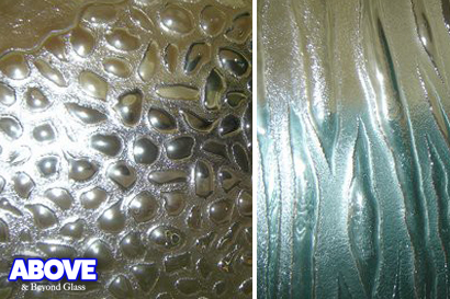 Textured glass includes decorative patterns pressed into the surface to provide privacy and visual interest while still allowing natural light to pass through.